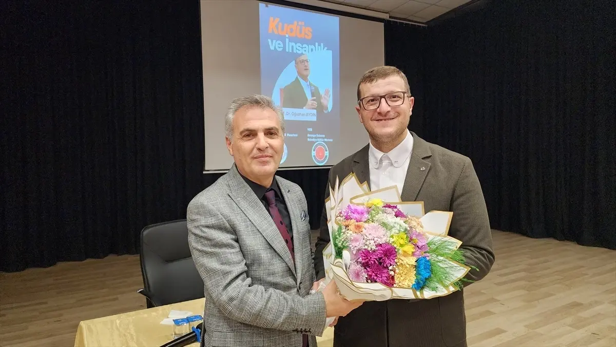 Belediye Kültür Merkezinde düzenlenen programa konuşmacı olarak katılan, Gazi Üniversitesi Eğitim Fakültesi Öğretim Üyesi Prof. Dr. Oğuzhan Aydın, Kudüs’ün tarihi, dini ve kültürel önemine dikkat çekti.